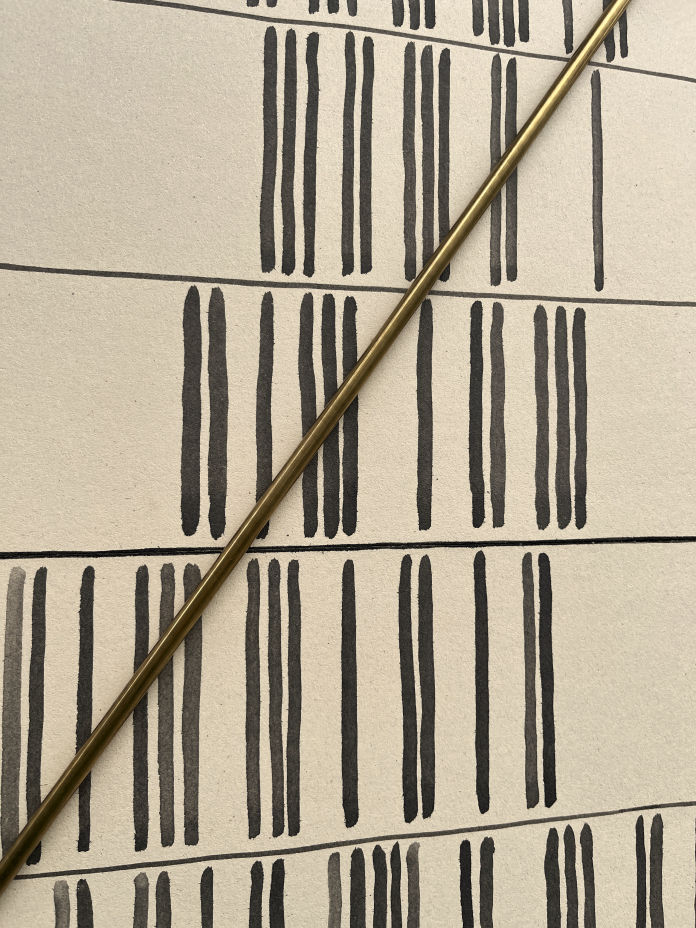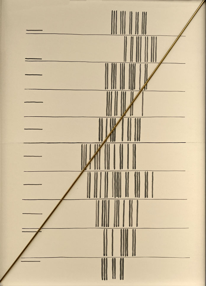ink on Finnish cardboard, brass